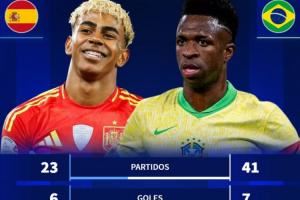 体育资讯09月09日讯 德转官方今日对比了亚马尔和维尼修斯在各自国家队的数据。