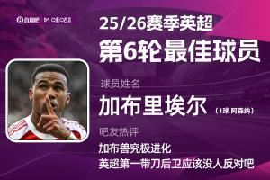 2025-2026赛季英超火热进行中,体育资讯和咪咕体育联合发起每轮英超最佳球员评选活动!第六轮评选结果结出炉,加布里埃尔头球绝杀,帮助阿森纳2-1战胜纽卡斯尔,获得吧友8万票的支持,力压哈兰德当选 【体育资讯X咪咕体育英超第6轮最佳球员】!