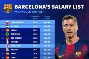 当前位置: 首页 > 资讯 > 足球资讯 > 德转列巴萨年薪榜:莱万2080万欧居首,德容1900万欧次席