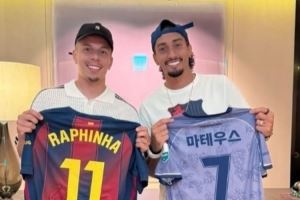 巴萨正在韩国进行季前友谊赛,他们7月31日7-3击败首尔FC。赛后,拉菲尼亚晒出与K1联赛安阳FC球员马修斯-奥利维拉交换球衣的照片,并配文:很高兴见到你,兄弟。